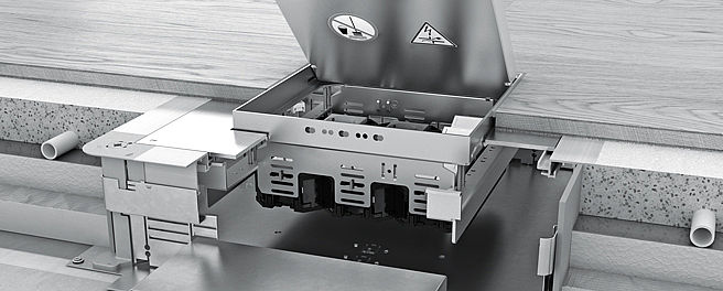 The different construction types of the cassettes allow dry, moist and wet care and are, to some extent, also suitable for floors requiring mechanical cleaning. With wet-care floor coverings, requirements (from the DIN EN 50085-2-2) mean that service outlets with tube body are to be used for device installation.