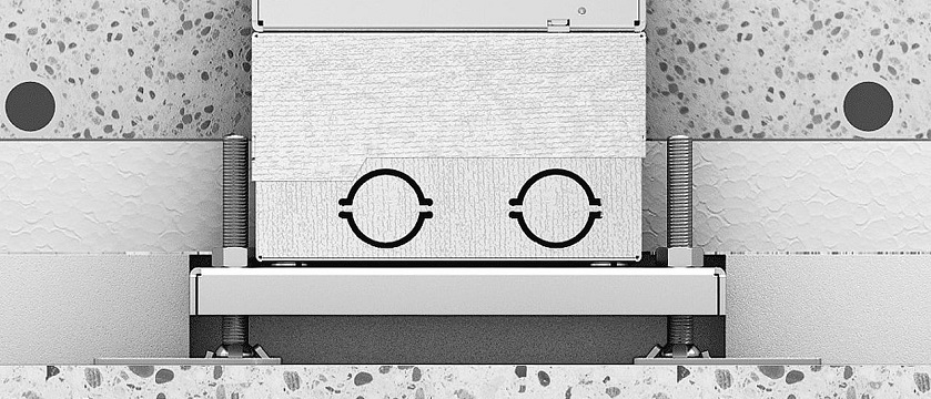 For screed laying, the housing is adjusted to the top edge of the screed, in order to simplify screed work. Supply lines into the UDHOME are run into the floor sockets using flexible installation pipes.