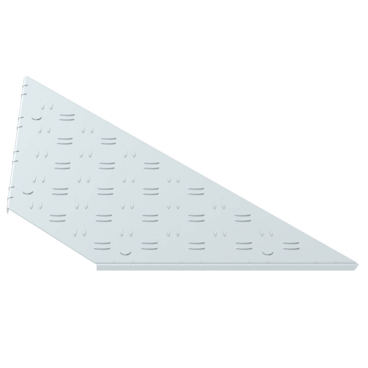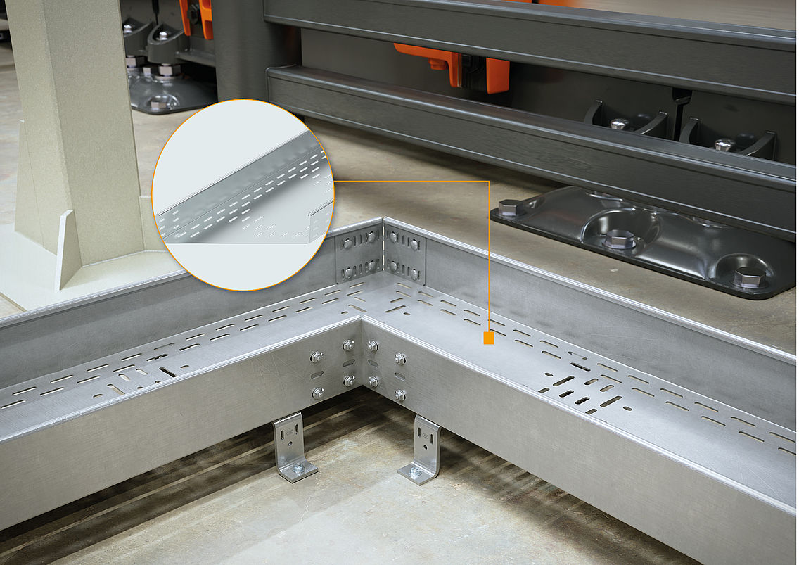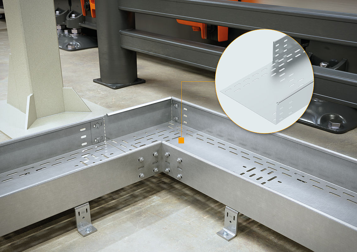 The portfolio also includes protective panels and support brackets. The protective panel acts as a collision guard, and with the support bracket the walkable cable tray system can be mounted.