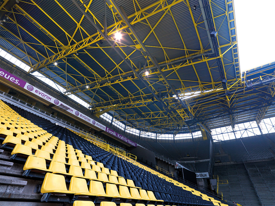 - Cable trays for outdoor areas: In open stadia and arenas, cable trays and support systems must be able to withstand weather conditions for long periods of time without corrosion damage. To achieve this, components with zinc coating thicknesses according to DIN EN ISO 1461 with approx. 40–60 μm are used, such as the OBO cable trays. These have already been installed in countless stadia around the world. For example, in the Philips Stadium in the Dutch city of Eindhoven, where they provide the reliable supply of the LED lighting above the main stand.