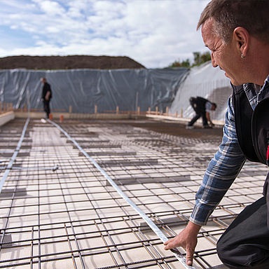If the concrete is insulated (white/black trough), a mesh earth electrode made of V4A (10 x 10 m) is also necessary in the earth.