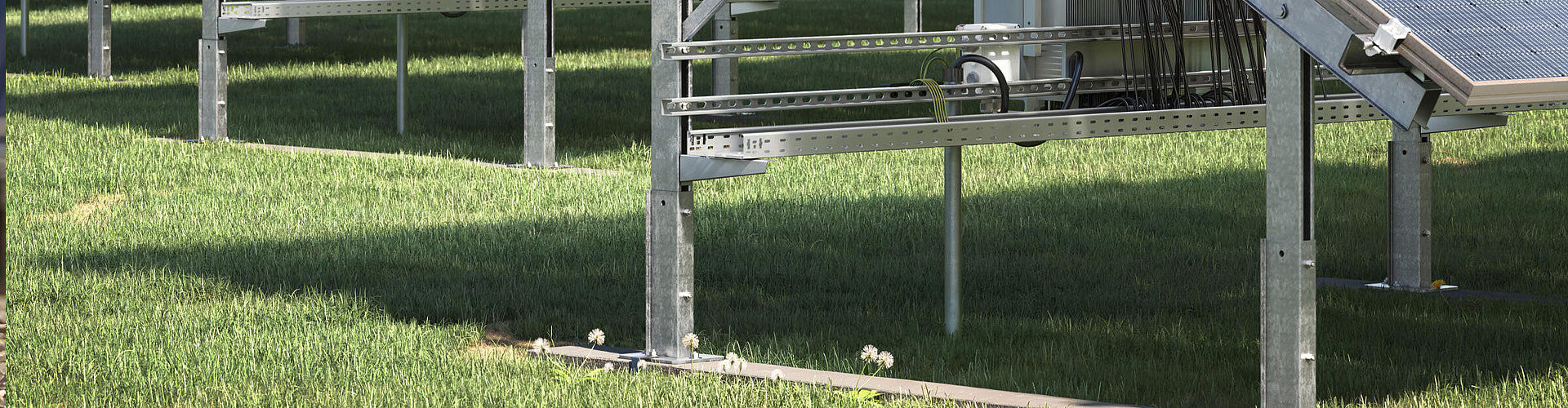The stand of the Magic PV Field system acts as a bracket for pre-mounted supports to mount free-standing PV systems.