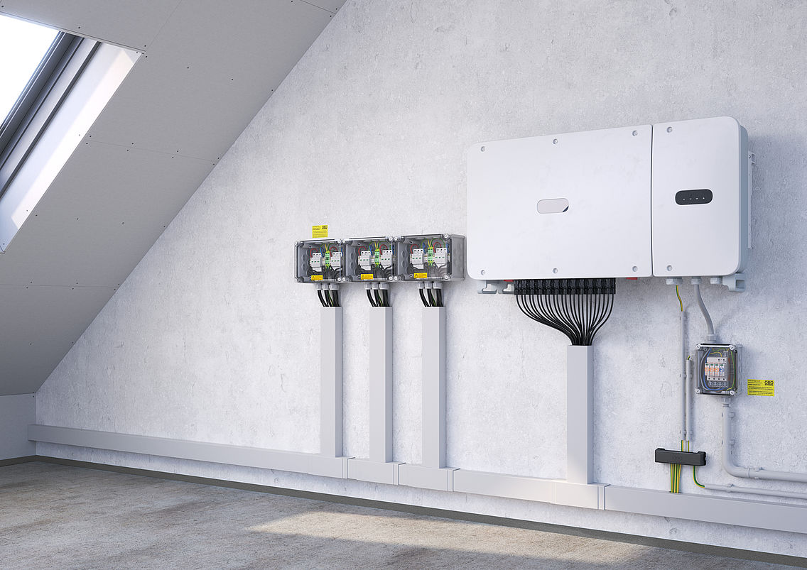 - Single-occupancy dwellings: Photovoltaic systems for single-occupancy dwellings are usually installed as pitched- or flat-roof systems. The generator connection boxes protect the DC-side input reliably and ensure that private households can produce and use their own solar energy with ease.