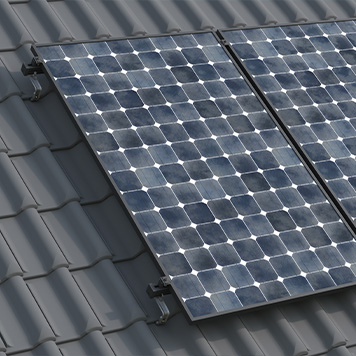 Most pitched roof systems are mounted on existing building roofs as so-called on-roof systems. The installation engineer attaches the PV modules to the roof tiles using roof hooks, mounting rails and module clamps made of metal.