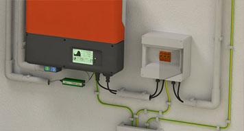 To offer optimum protection to the inverter of the PV system, a surge protective device should always be used on the DC side. On the AC side, at least one surge protective device must be used at the supply point of the electrical system. If the inverter is more than a 10 m cable length away from the supply point, then the surge protection should be repeated on the AC side, directly before the inverter.