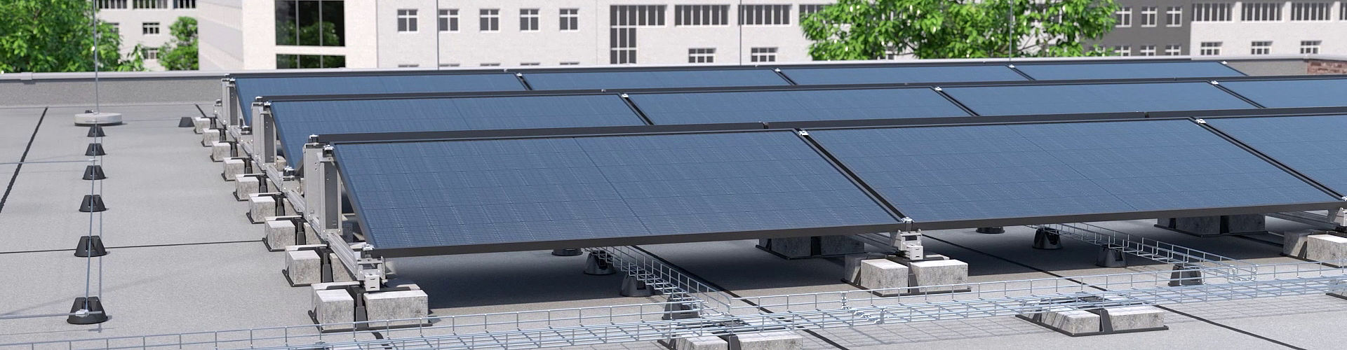 Thanks to the Magic technology, the Magic PV Flat Pro system for flat-roof systems is installed without the need for screws or tools. High-quality materials and system components with maximum load-bearing capacity form the basis for a long-lasting installation system. A cable routing system with mesh cable trays can also be integrated.