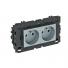 Product descriptionSocket with earthing pin with side connection Double 0°, with increased touch protection with screwless terminals, 2-pin, 16 A, 250 V~, with connection terminals to IEC 60884-1, suitable for installation in Rapid 80 device installation trunking systems.
