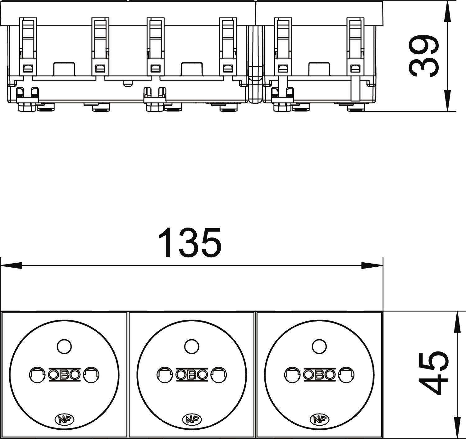 Approvals VDE Closable no CO2 Footprint (GWP) Cradle-to-Gate 0,5912 kg CO2e / 1 Piece Coding no Colour Pure white; RAL 9010 Connection type Screwless terminal Cover Central plate Depth 39 mm Dimension 250V, 10/16A Ejection mechanism no Error current protection no Fastening type Lock For more difficult conditions (according to VDE) no Halogen-free yes Height 45 mm Hinged cover no increased touch protection yes Insulated installation no Labelling panel no Material Polycarbonate Mounting type Device installation duct Nominal current 16 A Nominal voltage 250 V Number of poles 2 Number of units 3 Operating temperature, max. 40 °C Operating temperature, min. -5 °C Printed label/coding Without printing Protection rating Other Rotated central insert no Socket angle 0° Socket version NF Special power supply Without special power supply Surface version Matt Surge protection no Transparent no Version for Triple 0° Warning light no Width 135 mm With fine-wire fuse no With functional lighting no With on/off switch no With orientation lighting no - All types
