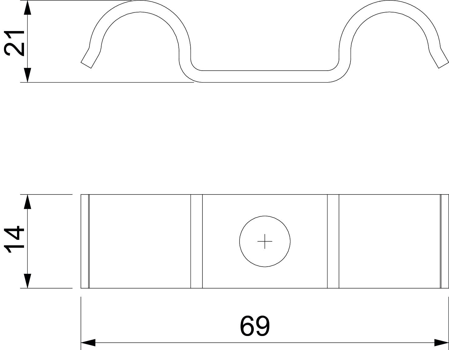 Clamping range D, min. 20 mm CO2 Footprint (GWP) Cradle-to-Gate 0,0189 kg CO2e / 1 Piece Dimension 20mm Dimension A 69 mm Dimension b 14 mm Dimension H 21 mm Distance to the wall no Fastening type Screw hole For diameter 20 Halogen-free yes Height 21 mm Hole size 6,5 mm Length 69 mm Material Steel Material thickness 1,5 mm Nominal diameter 20 mm Number of cables/pipes 2 Plastic-covered no Suitable in fire protection area yes Surface Electrogalvanized UV-resistant yes Version for Single-lobe Width 14 mm - All types