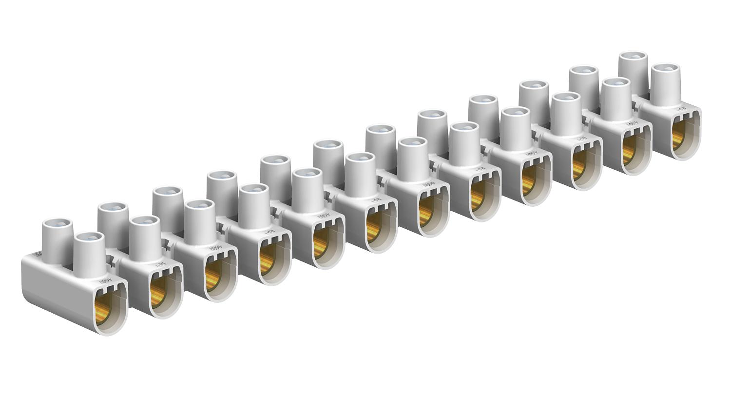 Ambient temperature 80 °C Closing plate required no Colour White Connectable conductor cross-section, fine-wire with wire-end ferrule, max. 16 mm² Connectable conductor cross-section, fine-wire with wire-end ferrule, min. 4 mm² Connectable conductor cross-section, fine-wire without wire-end ferrule, max. 6 mm² Connectable conductor cross-section, fine-wire without wire-end ferrule, min. 4 mm² Connectable conductor cross-section, multi-wire, max. 10 mm² Connectable conductor cross-section, multi-wire, min. 4 mm² Connection position Side Cross-section Max. attachment each side: 16 mm² single-wire or 10 mm² multi-wire or 6 mm² flexible mm² Dimension 16,0mm² Drill hole spacing, centre 15 mm Explosion-tested version no Height 20,7 mm Length 175 mm Material Polypropylene No. of terminals 12 Nominal cross-section, min. 16 mm² Nominal current 76 A Nominal voltage 450 V Number of screwless terminals per pole 2 Permitted temperature range, max. 80 °C Permitted temperature range, min. -5 °C Pole number 12 Suitable for flexible conductors yes Suitable for multi-wire conductors yes Suitable for solid conductors yes Transparent no Version of electrical connection 1 Screw connection Version of electrical connection 2 Screw connection Width 25 mm - All types