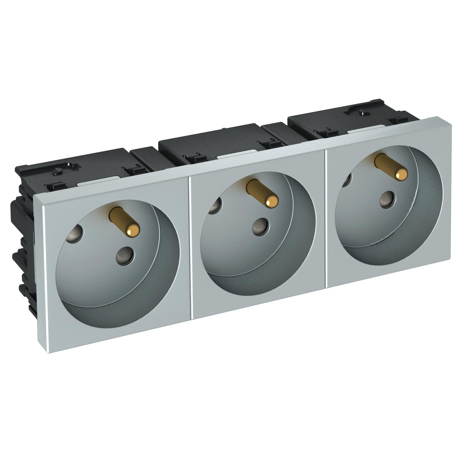 Approvals VDE Closable no CO2 Footprint (GWP) Cradle-to-Gate 0,3847 kg CO2e / 1 Piece Coding no Colour Aluminium painted Connection type Screwless terminal Cover Central plate Depth 37 mm Dimension 250V, 10/16A Ejection mechanism no Error current protection no Fastening type Lock For more difficult conditions (according to VDE) no Halogen-free yes Height 45 mm Hinged cover no increased touch protection yes Insulated installation no Labelling panel no Material Polycarbonate Mounting type Device installation duct Nominal current 16 A Nominal voltage 250 V Number of modules (for modular construction) 3 Number of poles 2 Number of units 3 Operating temperature, max. 40 °C Operating temperature, min. -5 °C Printed label/coding Without printing Protection rating Other Rotated central insert yes Socket angle 33° Socket version NF Special power supply Without special power supply Surface version Matt Surge protection no Transparent no Version for Triple 33° Warning light no Width 135 mm With fine-wire fuse no With functional lighting no With on/off switch no With orientation lighting no - All types