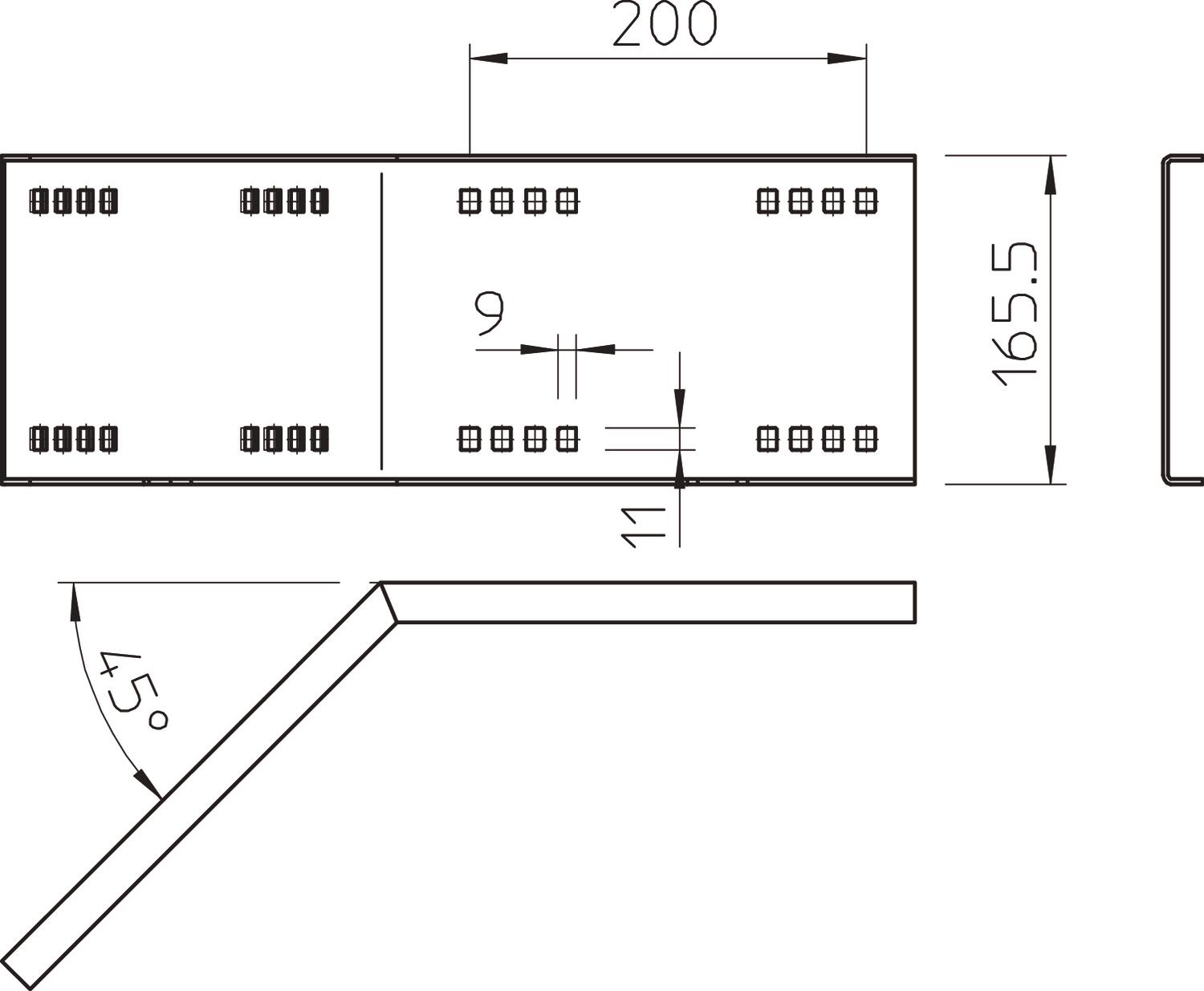 Product description45° angle connector, horizontal, for wide span cable trays and ladders with a side height of 160 mm.