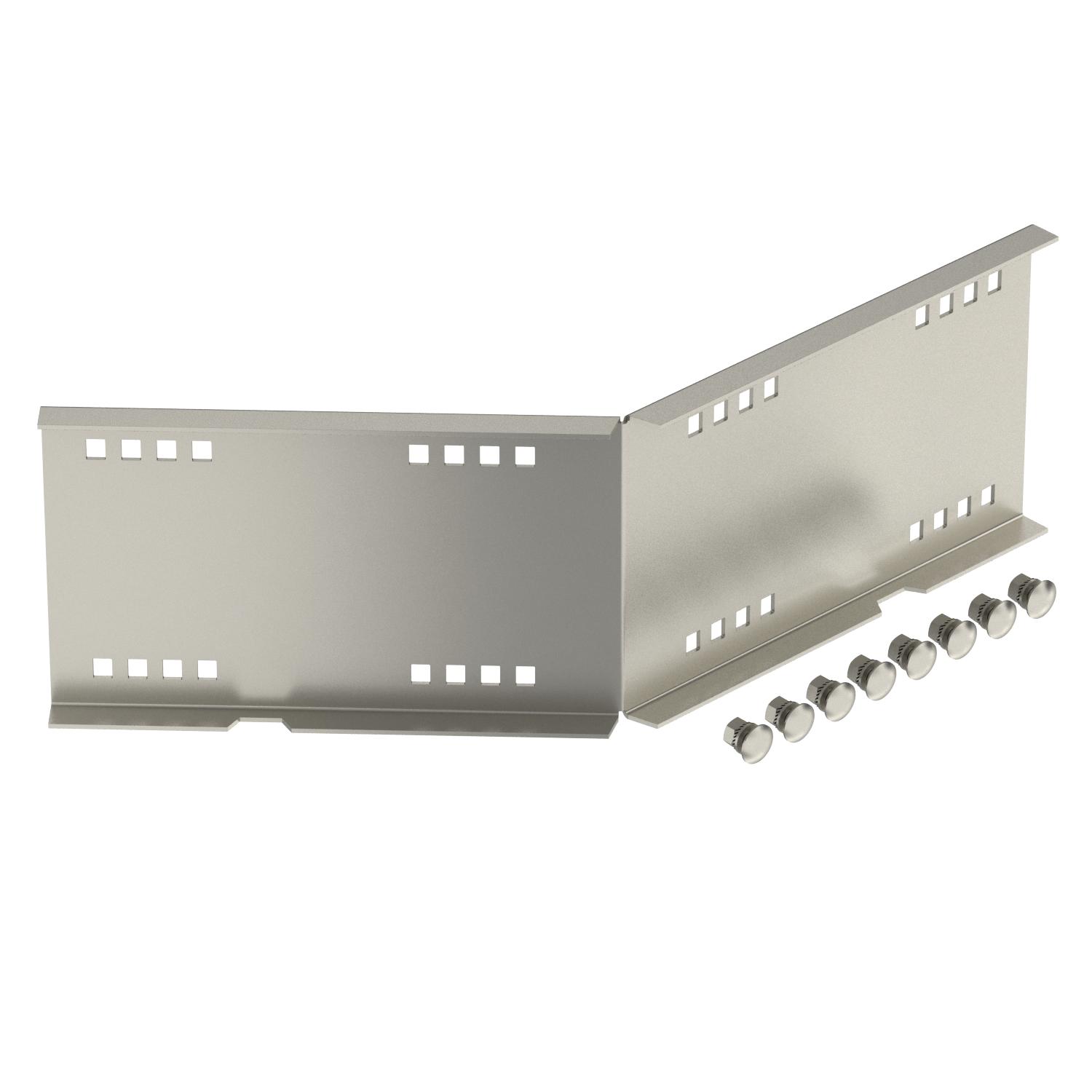 Product description45° angle connector, horizontal, for wide span cable trays and ladders with a side height of 160 mm.
