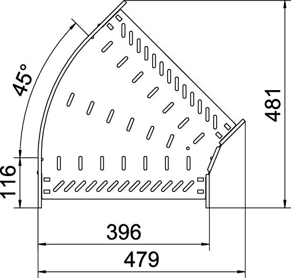 Product description45° bend for the creation of a horizontal branch, fitting for lock and screw-on cable trays of side height 85 mm. Screwless mounting with double clamps or screw connection with FRS truss-head screws and M6 combination nuts. Can be used indoors and outdoors. Fastening material must be ordered separately.
