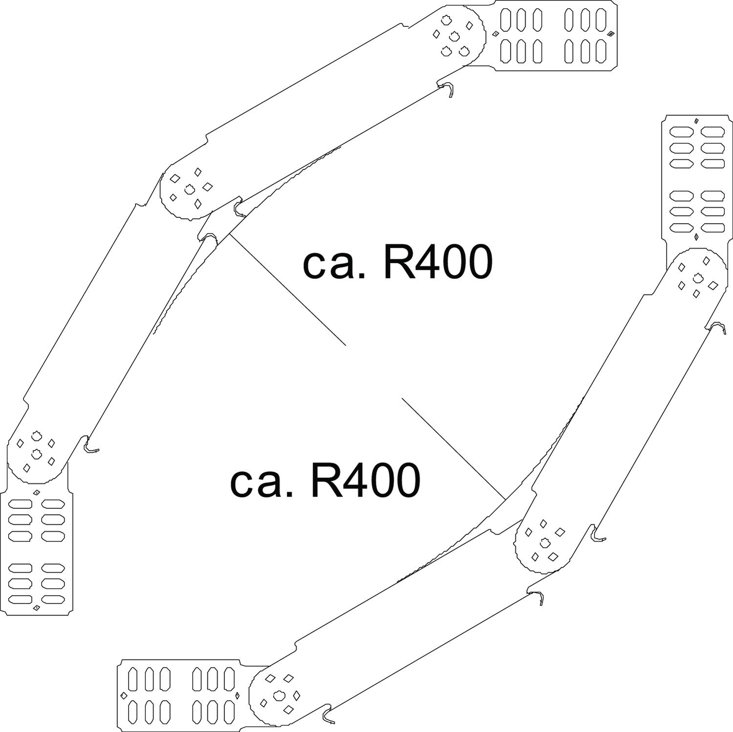 Bend (angle) 90° Change of direction Vertical, rising/falling CO2 Footprint (GWP) Cradle-to-Gate 10,0963 kg CO2e / 1 Piece Colour zinc Connector version Supplied connectors Dimension 60x400 Dimension R 400 mm Height 2 in Height 60 mm Maintain electrical functions no Material Steel Mounting perforation in base no NATO hole pattern no Plate thickness 1 mm Rustproof steel, pickled no Side perforation no Surface Hot-dip galvanised Type Adjustable bend_complete Type of connector, cable support system Screwed Wide-span version no Width 400 mm Width 16 in - All types