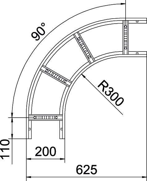 Product description90° bend, horizontal, with welded rung for all cable ladder types of 110 mm side height.