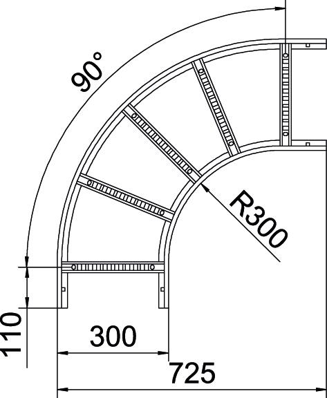 Product description90° bend, horizontal, with welded rung for all cable ladder types of 110 mm side height.