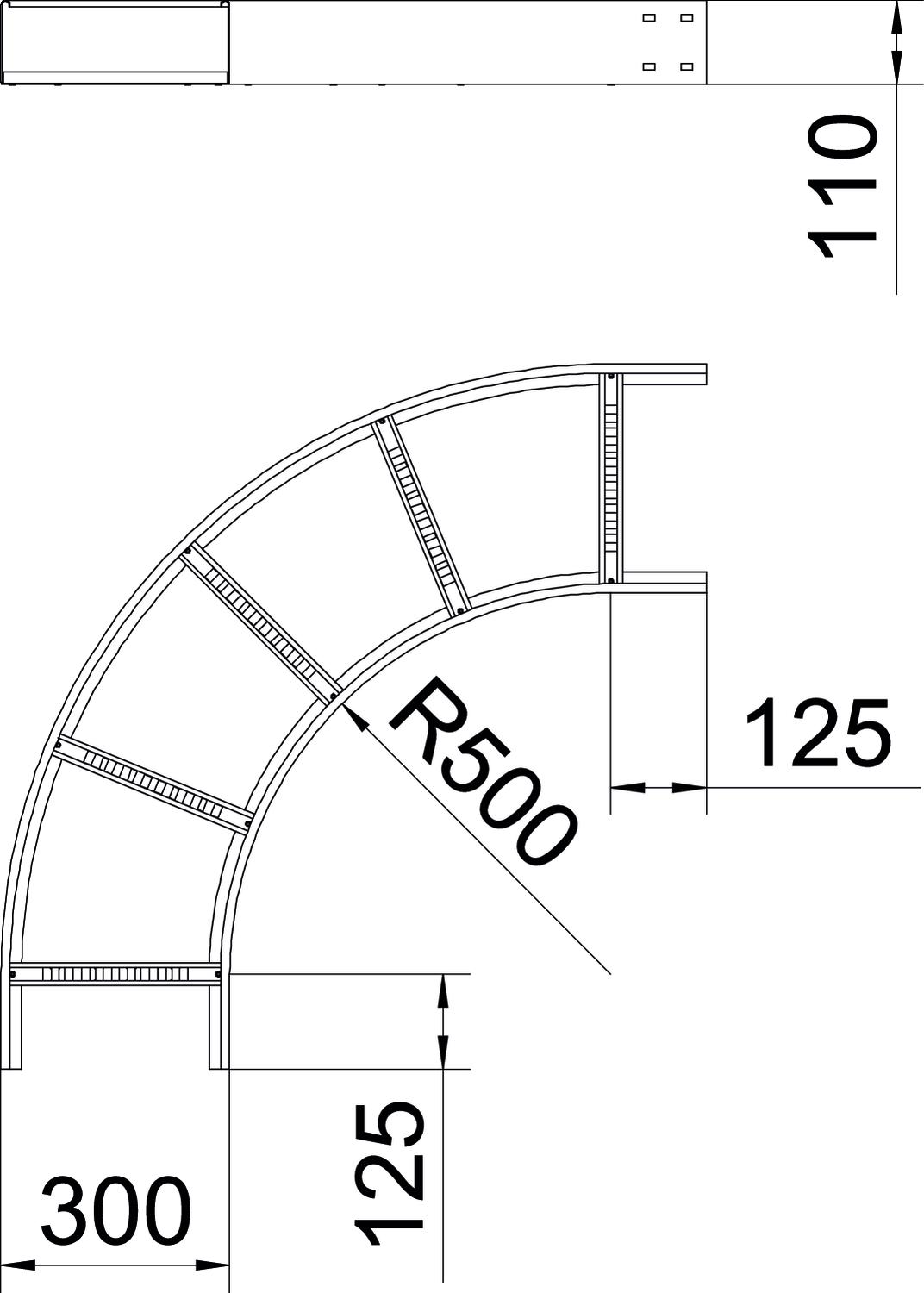 Product description90° bend, horizontal, for all wide span cable ladders of 110 mm side height.