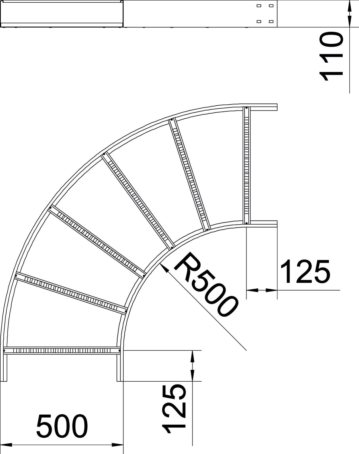 Product description90° bend, horizontal, for all wide span cable ladders of 110 mm side height.