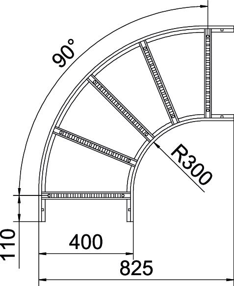 Product description90° bend, horizontal, with welded rung for all cable ladder types of 110 mm side height.
