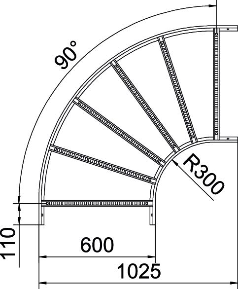 Bend (angle) 90° Change of direction Horizontal CO2 Footprint (GWP) Cradle-to-Gate 16,1662 kg CO2e / 1 Piece Colour zinc Connector version Without connectors Dimension 110x600 Dimension B 600 mm Dimension R 600 mm Height 110 mm Hinged no Maintain electrical functions no Material Steel Rail thickness 1,5 mm Rustproof steel, pickled no Side perforation no Side rail version Flat profile Surface Hot-dip galvanised Version of the rungs Profile perforated Wide-span version no Width 600 mm - All types