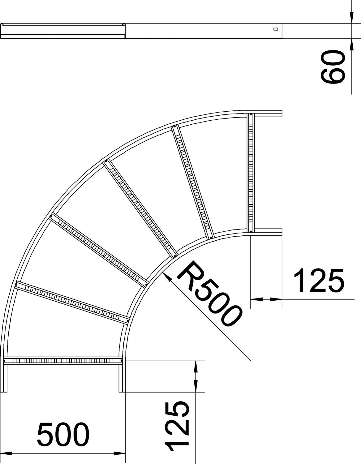 Bend (angle) 90° Change of direction Horizontal CO2 Footprint (GWP) Cradle-to-Gate 13,606 kg CO2e / 1 Piece Colour zinc Dimension 60x500 Dimension B 500 mm Dimension R 500 mm Height 60 mm Hinged no Maintain electrical functions no Material Steel Rail thickness 1,5 mm Rustproof steel, pickled no Side perforation no Side rail version Flat profile Surface Strip galvanized Version of the rungs Profile unperforated Wide-span version no Width 500 mm - All types