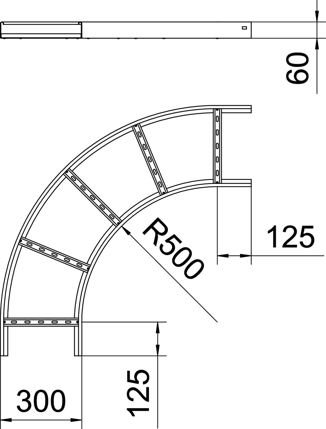 Bend (angle) 90° Change of direction Horizontal CO2 Footprint (GWP) Cradle-to-Gate 10,5655 kg CO2e / 1 Piece Colour zinc Connector version Without connectors Dimension 60x300 Dimension B 300 mm Dimension R 300 mm Height 60 mm Hinged no Maintain electrical functions no Material Steel Rail thickness 1,5 mm Rustproof steel, pickled no Side perforation no Side rail version Flat profile Surface Hot-dip galvanised Version of the rungs Profile unperforated Wide-span version no Width 300 mm - All types