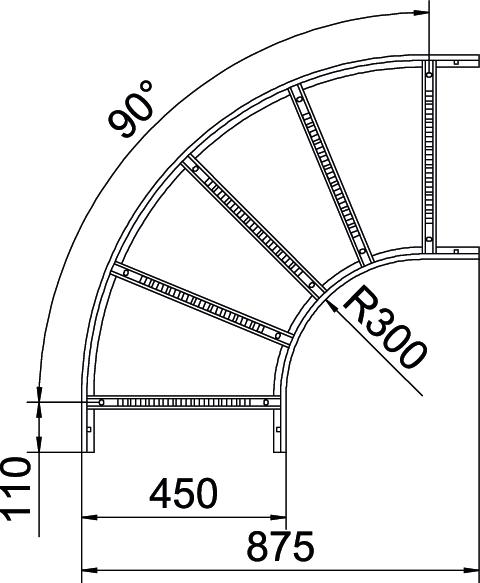 Product description90° bend, horizontal, with welded rung for all cable ladder types of 110 mm side height.