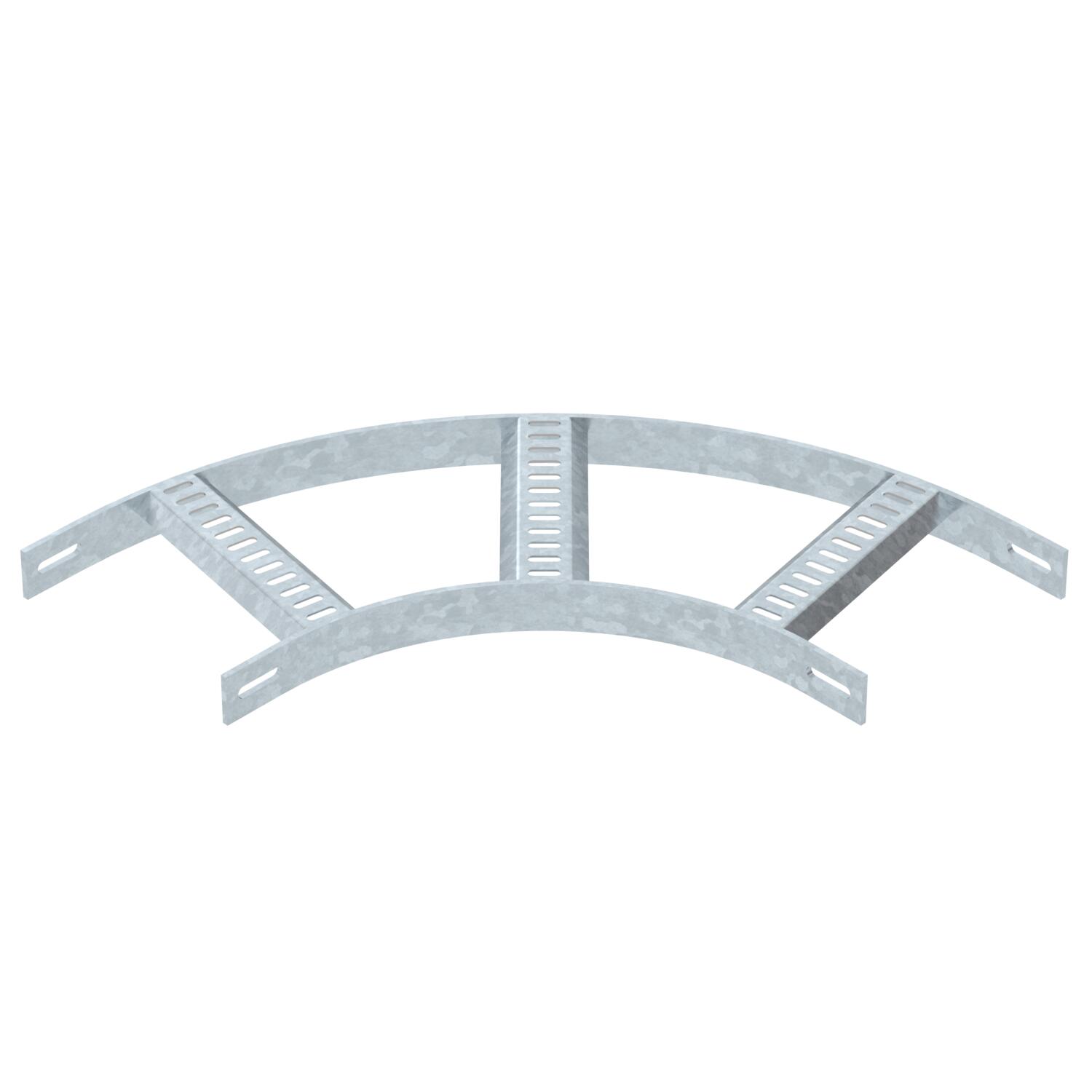 Product description90° bend for shipbuilding cable ladders, type SL 62, with side height of 40 mm with welded, perforated trapezoidal rungs which open in a downwards direction.