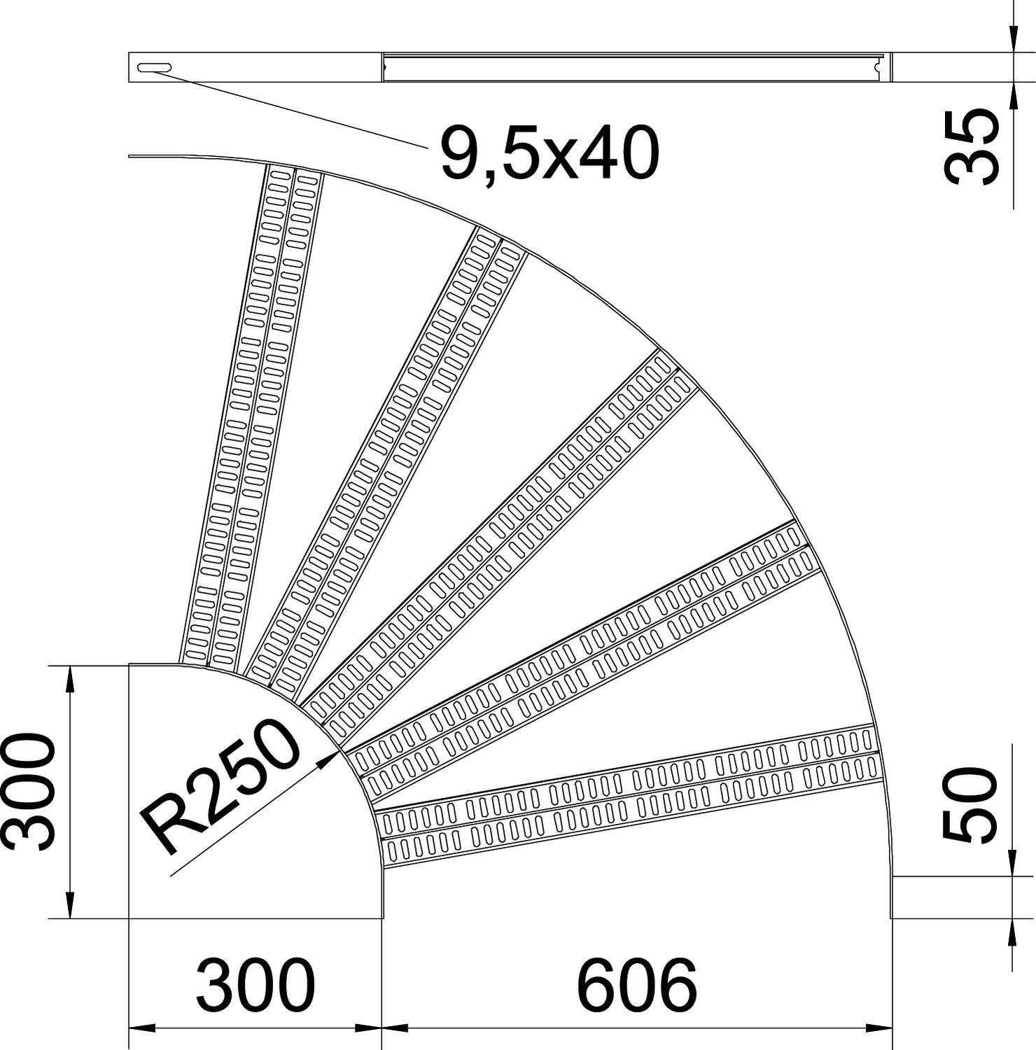 Product description90° bend for shipbuilding cable ladders, type SLZ L, with side height of 35 mm with welded, perforated Z rungs.