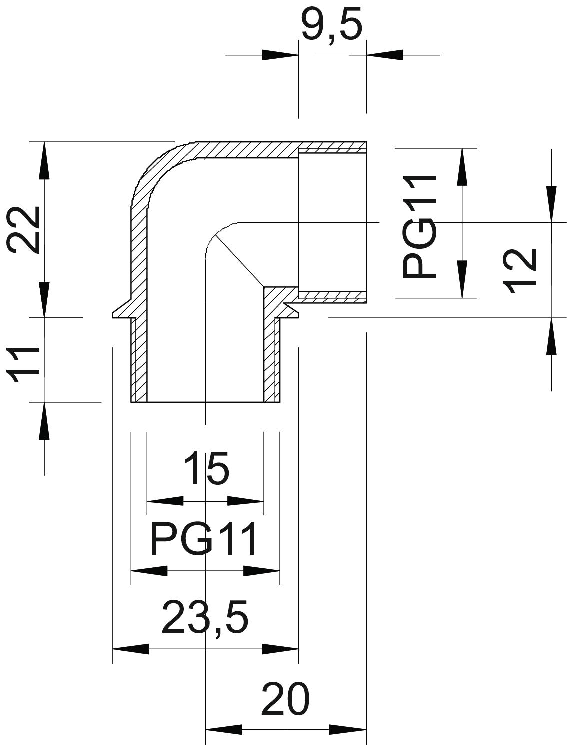Product descriptionElbow socket with PG internal and external thread to DIN 40430.