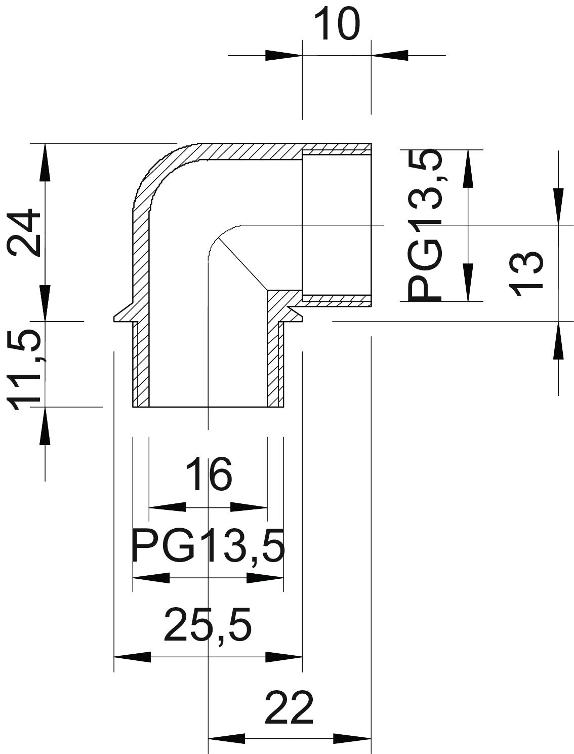 Product descriptionElbow socket with PG internal and external thread to DIN 40430.