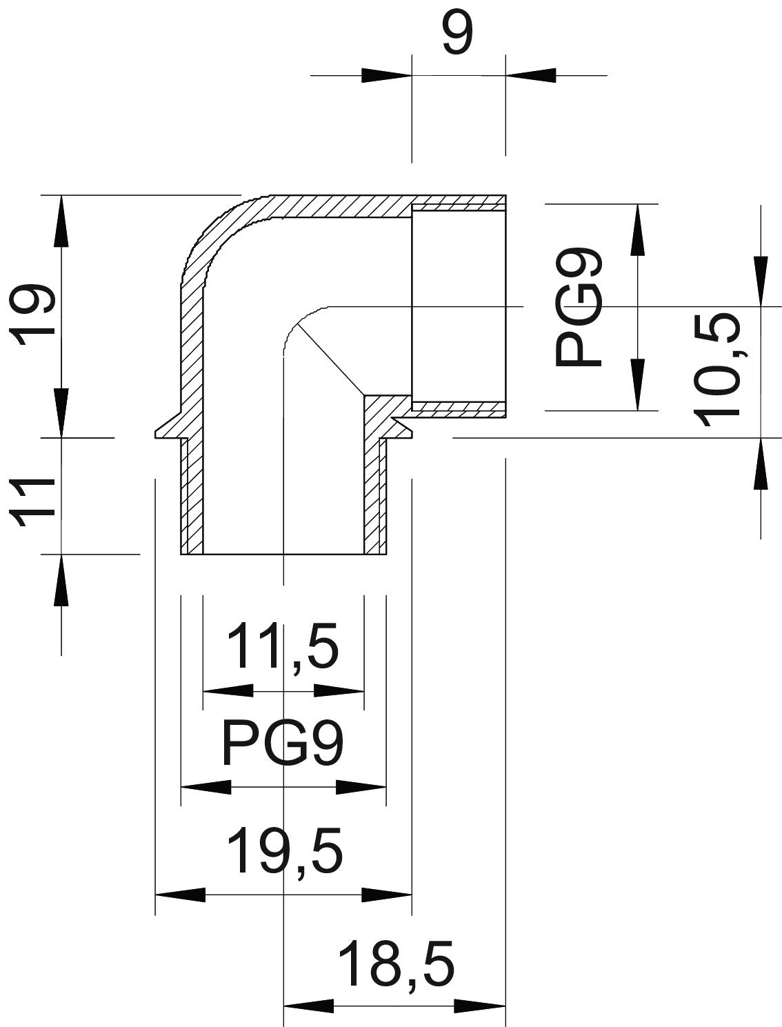 Product descriptionElbow socket with PG internal and external thread to DIN 40430.