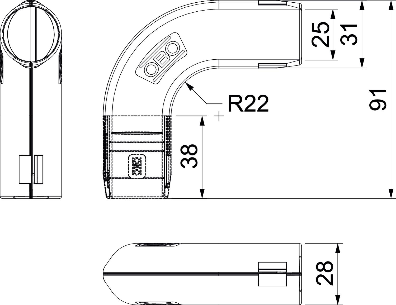 Angle of the bend 90 ° Brushed surface no CO2 Footprint (GWP) Cradle-to-Gate 0,0995 kg CO2e / 1 Piece Colour Pure white; RAL 9010 Dimension M25 Dimension B 31,2 mm Dimension d 25 mm Dimension L 91 mm Dimension L1 38 mm Dimension R 22 mm Flexible no Halogen-free yes Material Polypropylene Permitted temperature range, max. 60 °C Polished surface no Two-part yes Version for Connector With inspection opening and lid no With sleeve no - All types