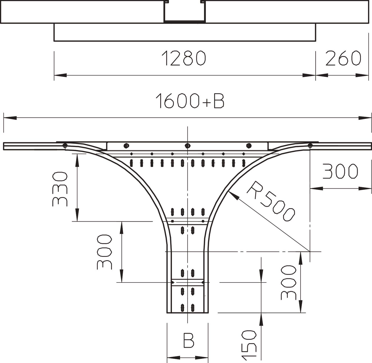 Product descriptionAdd-on tee for horizontal use. For all wide span cable trays of 160 mm side height.
