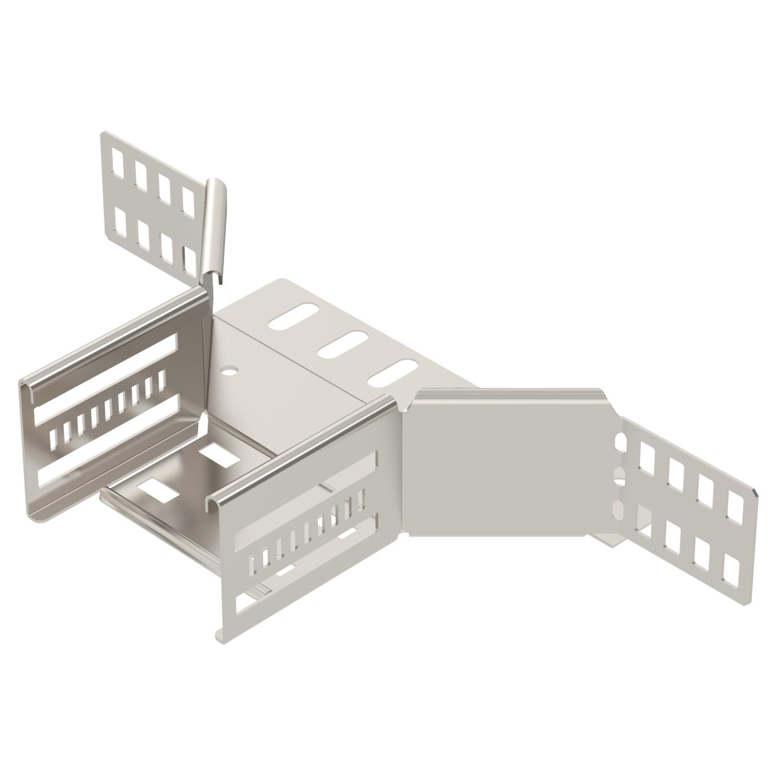 Product descriptionAdd-on tee for the creation of a horizontal branch or cross-over, fitting for lock and screw-on cable trays of side height 60 mm. Screwless mounting with double clamps or screw connection with FRS truss-head screws and M6 combination nuts. Can be used indoors and outdoors. Fastening material must be ordered separately.