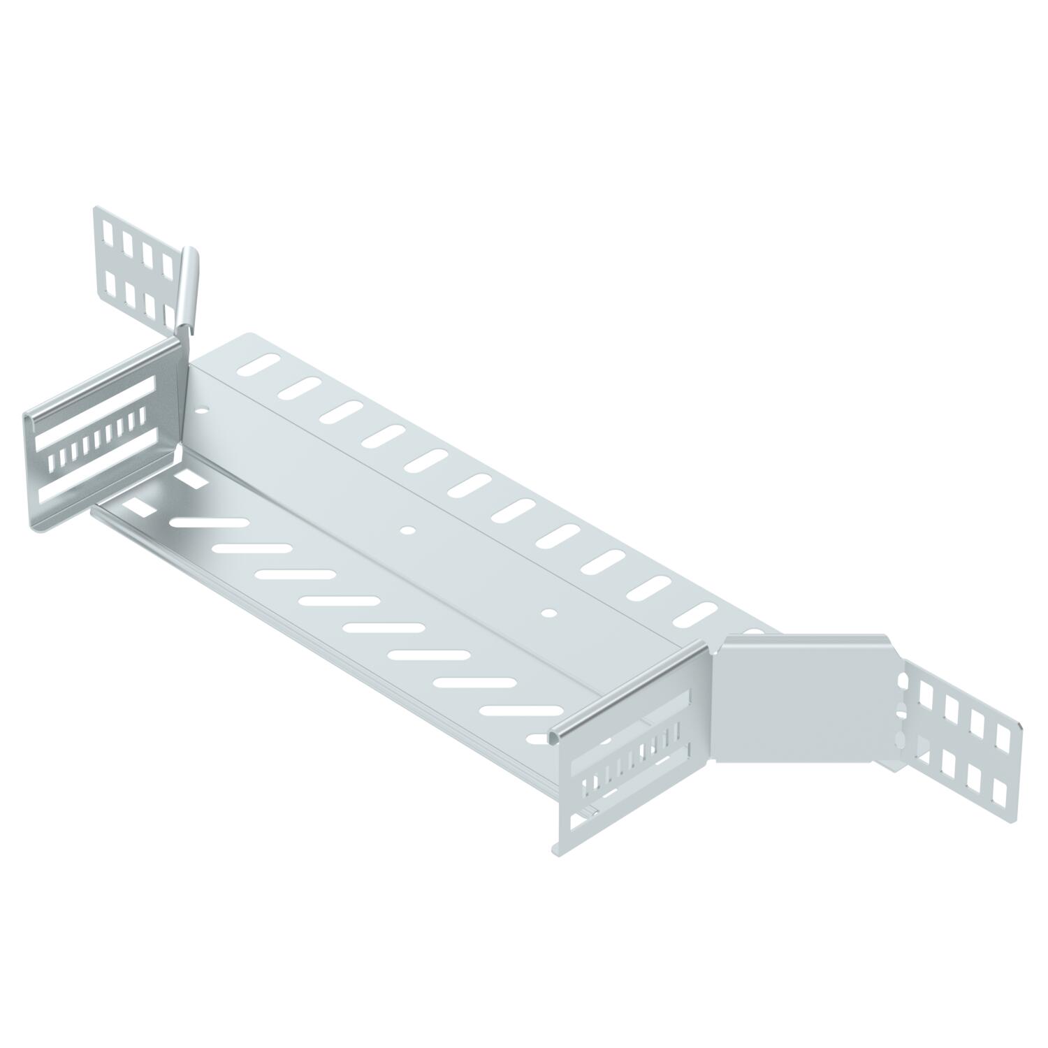 Product descriptionAdd-on tee made from CO2-reduced steel for the creation of a horizontal branch or cross-over. Fitting for latchable and screwable cable trays, side height 60 mm. Screwless mounting with double clamps or screw connection with FRS truss-head screws and M6 combination nuts. Can be used in indoor areas. Fastening material must be ordered separately.