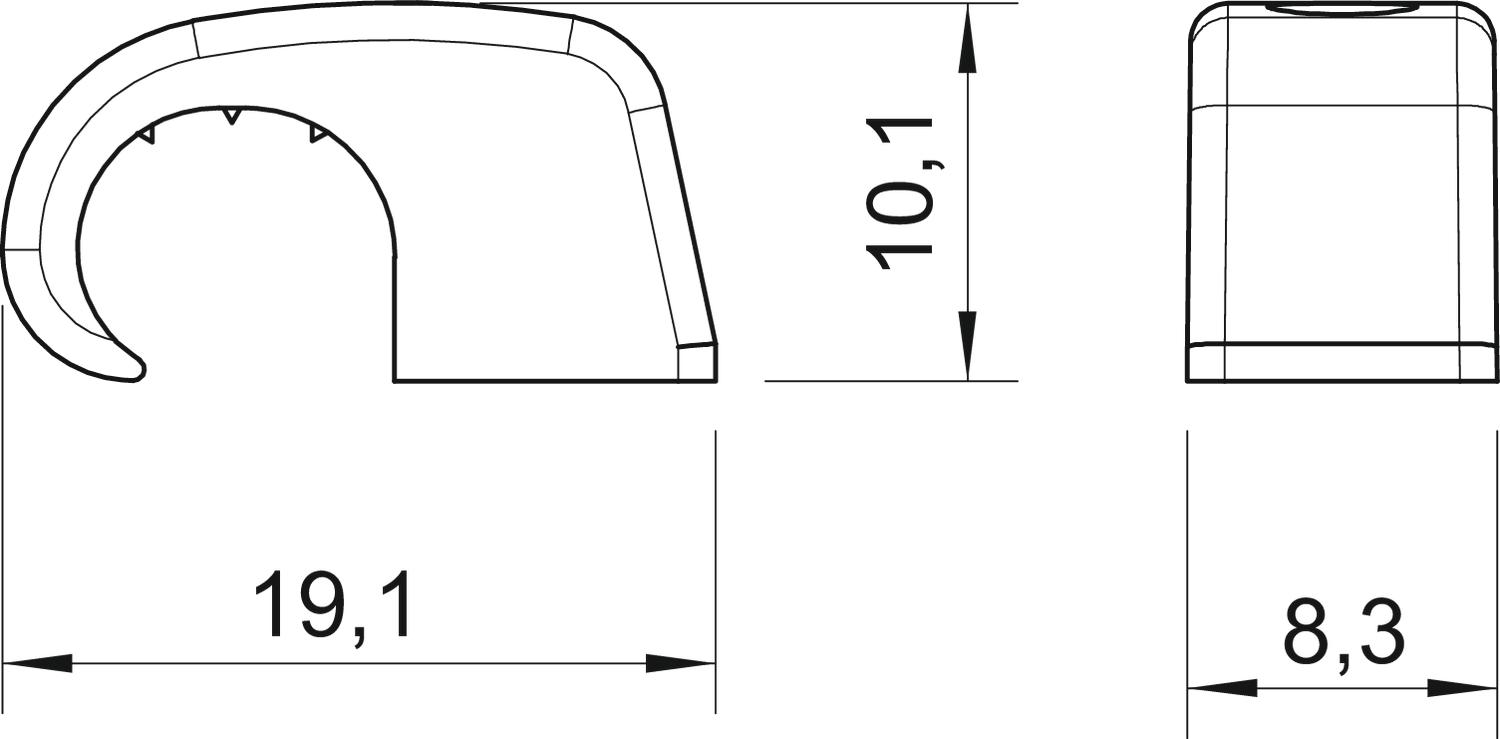 CO2 Footprint (GWP) Cradle-to-Gate 0,0022 kg CO2e / 1 Piece Colour Light grey; RAL 7035 Dimension 7-12mm Dimension B 8,3 mm Dimension H 10,1 mm Dimension L 19,1 mm Double clip no for cable diameter, max. 12 mm for cable diameter, min. 7 mm For nail diameter 2 Halogen-free yes Hardened no Impact-resistant yes Material Polypropylene Pipe locking no Shape Round (for round conductor) With nail no - All types