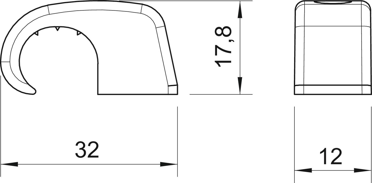 CO2 Footprint (GWP) Cradle-to-Gate 0,0071 kg CO2e / 1 Piece Colour Light grey; RAL 7035 Dimension 14-17mm Dimension B 12 mm Dimension H 17,8 mm Dimension H1 32 mm Dimension L 32 mm Double clip no for cable diameter, max. 17 mm for cable diameter, min. 14 mm For nail diameter 2 Halogen-free yes Hardened no Impact-resistant yes Material Polypropylene Pipe locking no Shape Round (for round conductor) With nail no - All types
