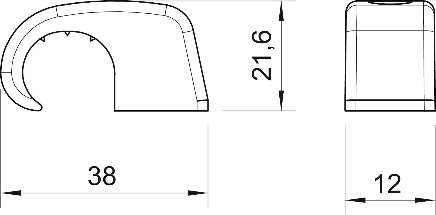 CO2 Footprint (GWP) Cradle-to-Gate 0,0114 kg CO2e / 1 Piece Colour Light grey; RAL 7035 Dimension 17-21mm Dimension B 12 mm Dimension H 21,6 mm Dimension H1 38 mm Dimension L 38 mm Double clip no for cable diameter, max. 21 mm for cable diameter, min. 17 mm For nail diameter 2 Halogen-free yes Hardened no Impact-resistant yes Material Polypropylene Pipe locking no Shape Round (for round conductor) With nail no - All types