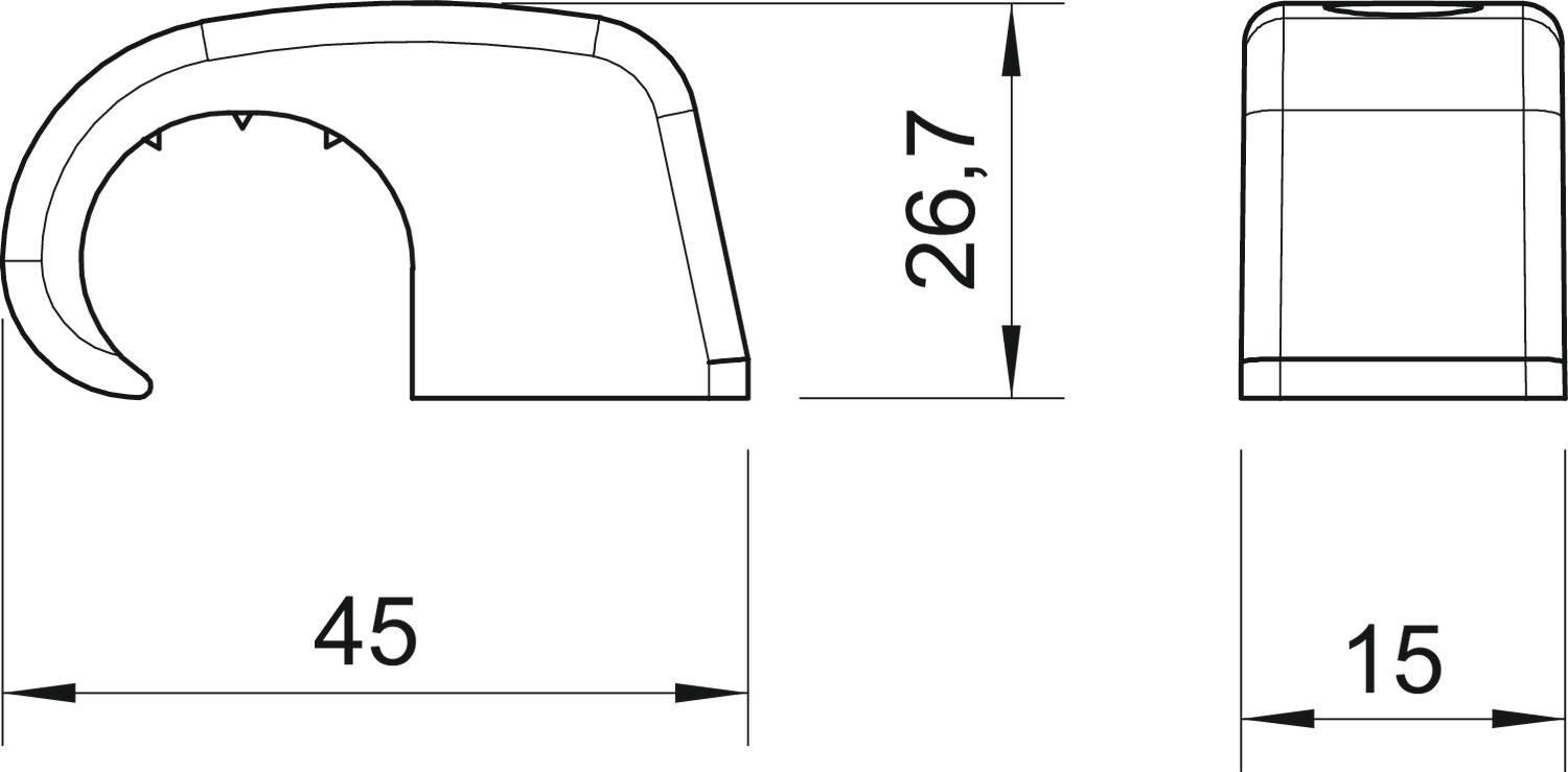 CO2 Footprint (GWP) Cradle-to-Gate 0,0182 kg CO2e / 1 Piece Colour Light grey; RAL 7035 Dimension 21-25mm Dimension B 15 mm Dimension H 26,7 mm Dimension H1 45 mm Dimension L 45 mm Double clip no for cable diameter, max. 25 mm for cable diameter, min. 21 mm For nail diameter 2 Halogen-free yes Hardened no Impact-resistant yes Material Polypropylene Pipe locking no Shape Round (for round conductor) With nail no - All types