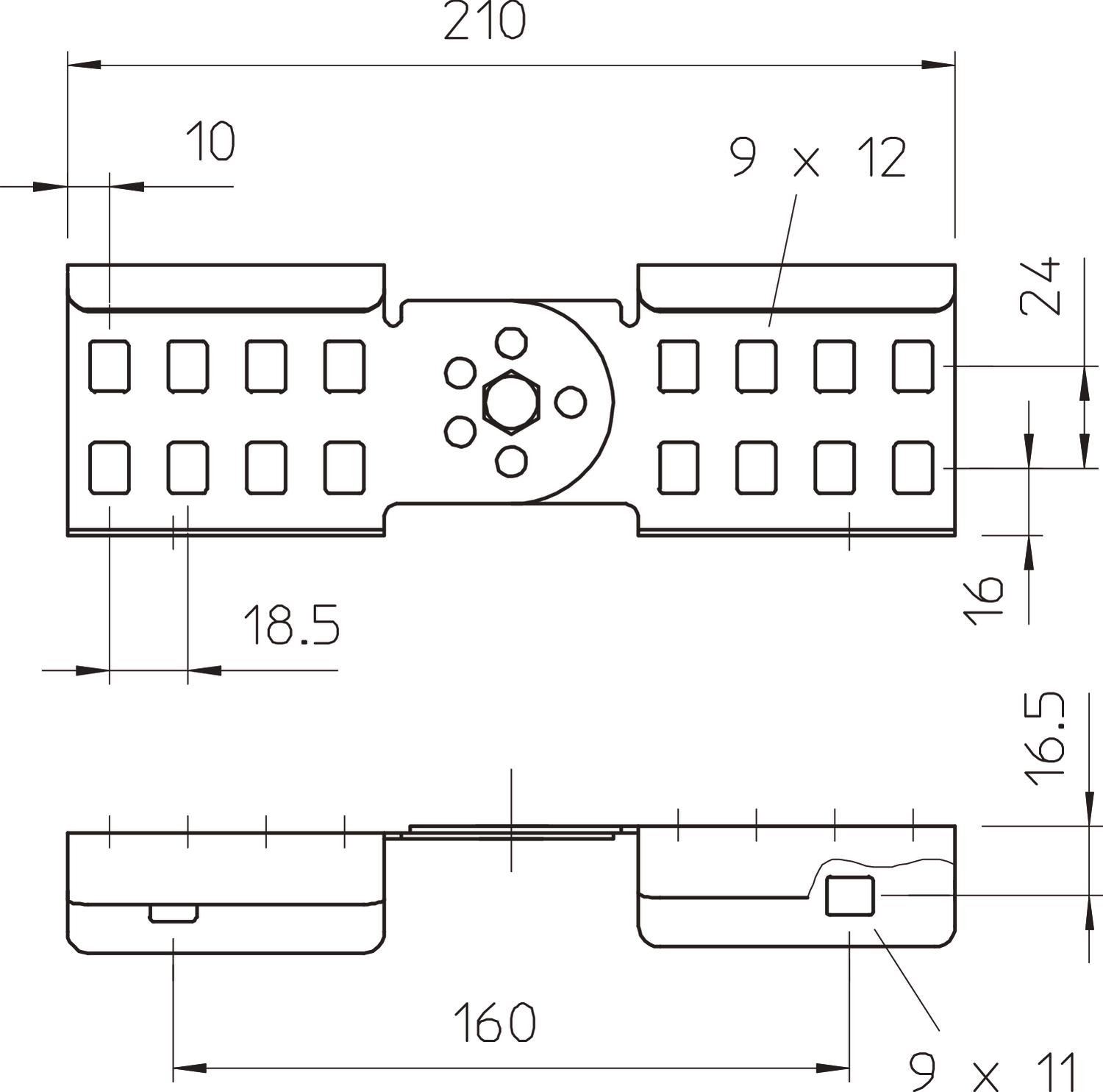 Product descriptionAdjustable connector as external connector to join cable ladders and fittings with a side height of 60 mm and continuous rail perforation. Angle can be adjusted vertically.