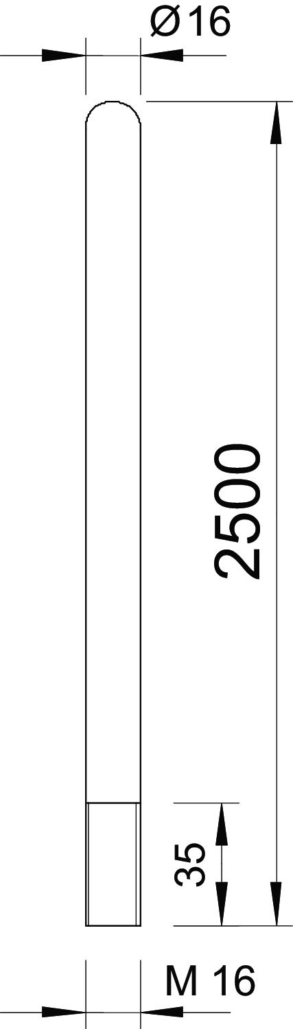 CO2 Footprint (GWP) Cradle-to-Gate 21,0937 kg CO2e / 1 Piece Connection Round conductor Dimension 2500mm Dimension L 2500 mm High voltage-resistant, insulated version no Length 2500 mm Material Aluminium Nominal size Ø 16 mm Version for Air-termination rod with thread - All types