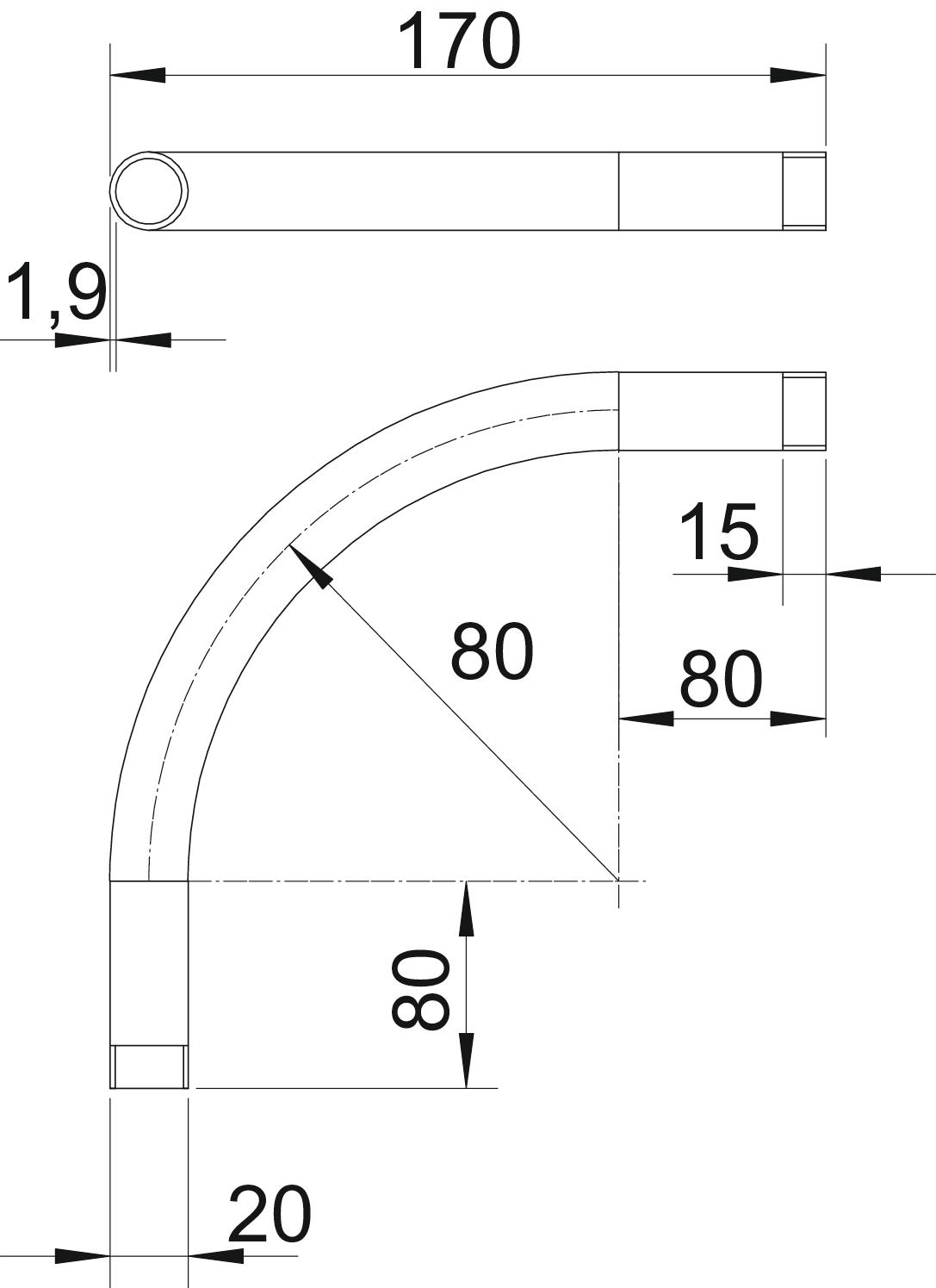 Angle of the bend 90 ° Brushed surface no Dimension M20x1,5 Dimension A 80 mm Dimension B 170 mm Dimension D 20 mm Dimension l 15 mm Dimension m (mm) M20 Dimension R 80 mm Dimension t 1,9 mm Flexible no For nominal pipe diameter 20 mm Halogen-free no Material Aluminium Permitted temperature range, max. 250 °C Permitted temperature range, min. -45 °C Polished surface no Thread M20x1,5 Two-part no Version for Thread With inspection opening and lid no With sleeve yes - All types