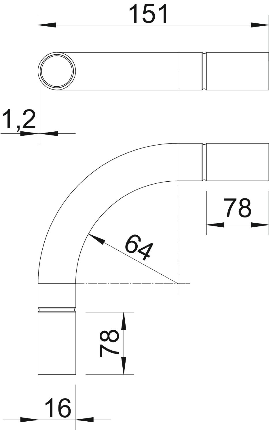 Angle of the bend 90 ° Brushed surface no Dimension Ø16mm Dimension A 78 mm Dimension B 151 mm Dimension d 16,2 mm Dimension D 18,6 mm Dimension l 28 mm Dimension m (mm) M16 Dimension R 56 mm Dimension t 1,2 mm Flexible no For nominal pipe diameter 16 mm Halogen-free no Material Aluminium Permitted temperature range, max. 250 °C Permitted temperature range, min. -45 °C Polished surface no Two-part no Version for Connector With inspection opening and lid no With sleeve yes - All types