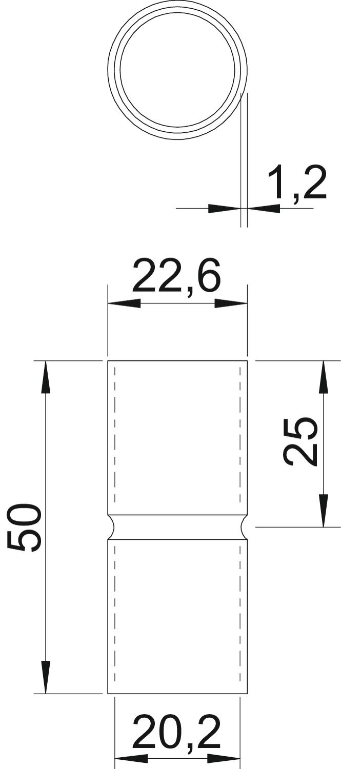 Brushed surface no Dimension Ø20mm Dimension D 22,6 mm Dimension d 20,2 mm Dimension l 25 mm Dimension L 50 mm Dimension t 1,2 mm for pipe diameter 20 mm Halogen-free yes Length 50 mm Material Aluminium Permitted temperature range, max. 250 °C Permitted temperature range, min. -45 °C Polished surface no Size 20 Two-part no Version for Connector With inspection opening and lid no - All types
