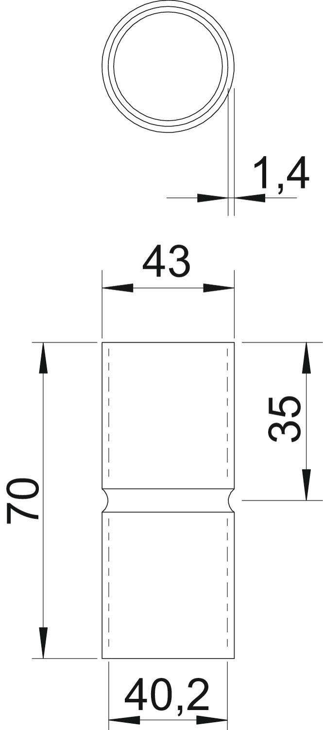 Brushed surface no Dimension Ø40mm Dimension d 40,2 mm Dimension D 43 mm Dimension l 35 mm Dimension L 70 mm Dimension t 1,4 mm for pipe diameter 40 mm Halogen-free yes Length 70 mm Material Aluminium Permitted temperature range, max. 250 °C Permitted temperature range, min. -45 °C Polished surface no Size 40 Two-part no Version for Connector With inspection opening and lid no - All types
