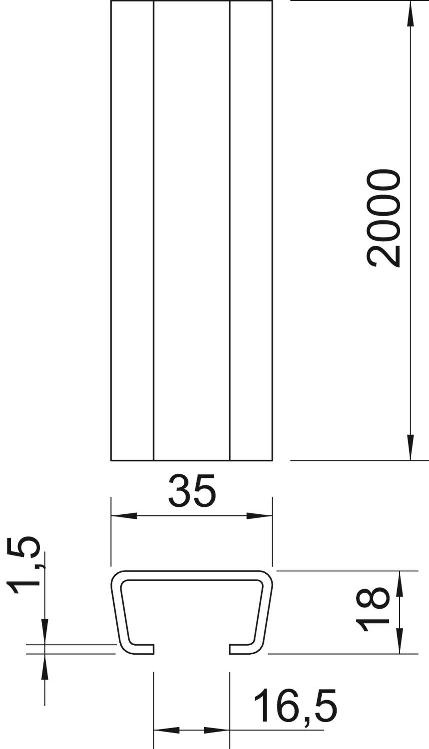 Breakable no Bundle 20 m CO2 Footprint (GWP) Cradle-to-Gate 1,6286 kg CO2e / 1 Meter Dimension 2000x35x18 Dimension L 2000 mm Height 18 mm Length 2000 mm Maintain electrical functions no Material Steel Material thickness 1,5 mm Profile shape C profile Slot width 16,5 mm Static value A 1,14 cm² Static value ly 0,49 cm⁴ Static value lz 0,85 cm⁴ Static value Wy 0,44 cm³ Static value Wz 1,05 cm³ Surface Bright Type of perforation Without Version for Single profile Width 35 mm With perforation no With toothing no - All types