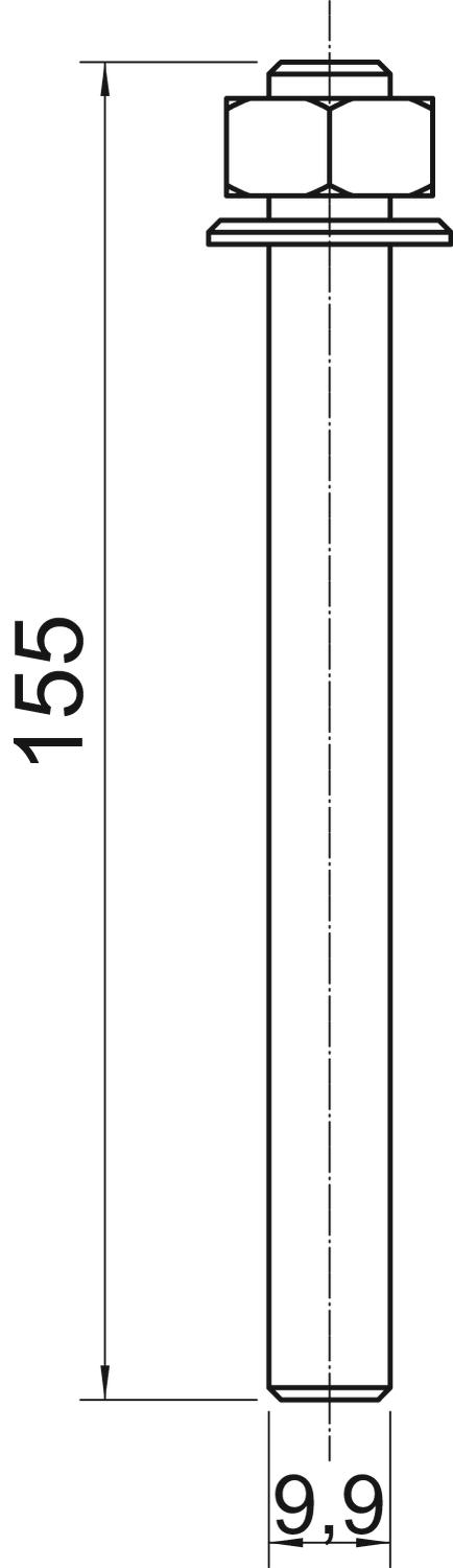 Colour stainless steel Depth marking yes Dimension 12x9,9 Dimension d 12 mm Dimension L 155 mm Length 155 mm Material Stainless steel Thread M12 Thread metric 12 Thread type Metric WAF 19 With external thread yes - All types