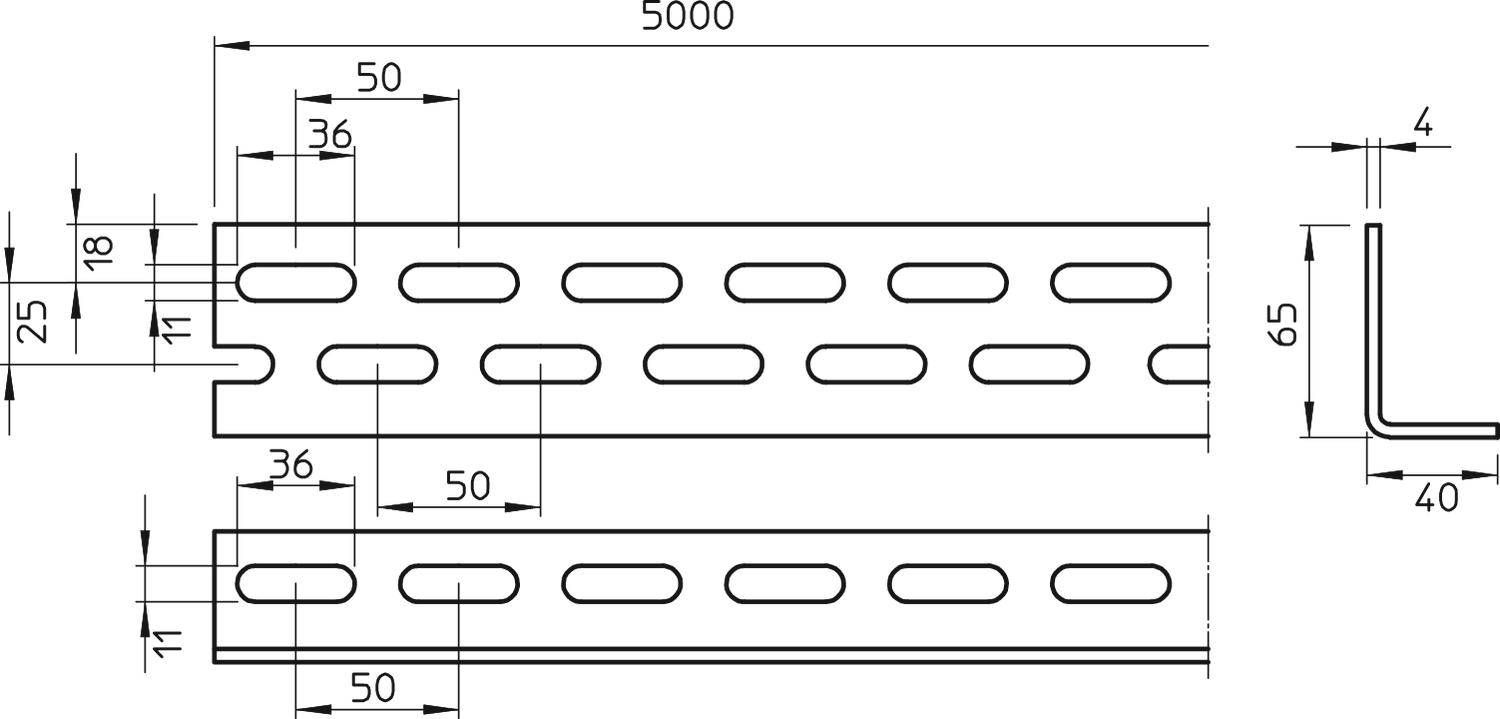 Breakable no CO2 Footprint (GWP) Cradle-to-Gate 5,926 kg CO2e / 1 Meter Colour zinc Dimension 40x65x5000 Height 40 mm Length 5000 mm Maintain electrical functions no Material Steel Mounting perforation in base yes Plate thickness 4 mm Profile shape L profile Side perforation yes Surface Hot-dip galvanised Type of perforation 2 sides perforated Version for Single profile Width 65 mm With toothing no - All types